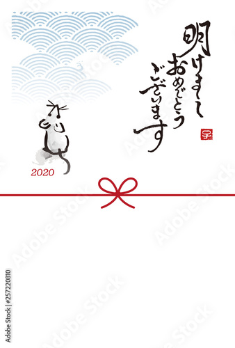 子の筆文字と水引 32 和風テンプレート 年賀状スープ 2020